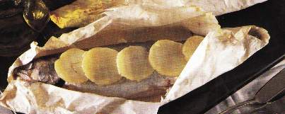 | Preparazione: | Avete le trote, strofinatele all'esterno e all'interno con il succo di limone, poi conditele con sale e pepe. Tagliate a rondelle la zucchina e la carota; sbucciate le patate e tagliatele a fettine sottili. Disponete un foglio d'alluminio su una placca da forno e ricopritelo con le verdure, aggiungendo le olive e l'aglio a fettine sottili. Sistemate su questa base le trote, irrorate di olio e di vino, quindi ricoprite con il foglio d'alluminio e sigillate bene il cartoccio. Trasferite il tutto in forno caldo per circa 20 minuti, poi aprite parzialmente il cartoccio, disponetelo su un piatto di portata e servite. E' un piatto molto gustoso, sano, nutriente e particolarmente adatto a bambini e anziani. | |